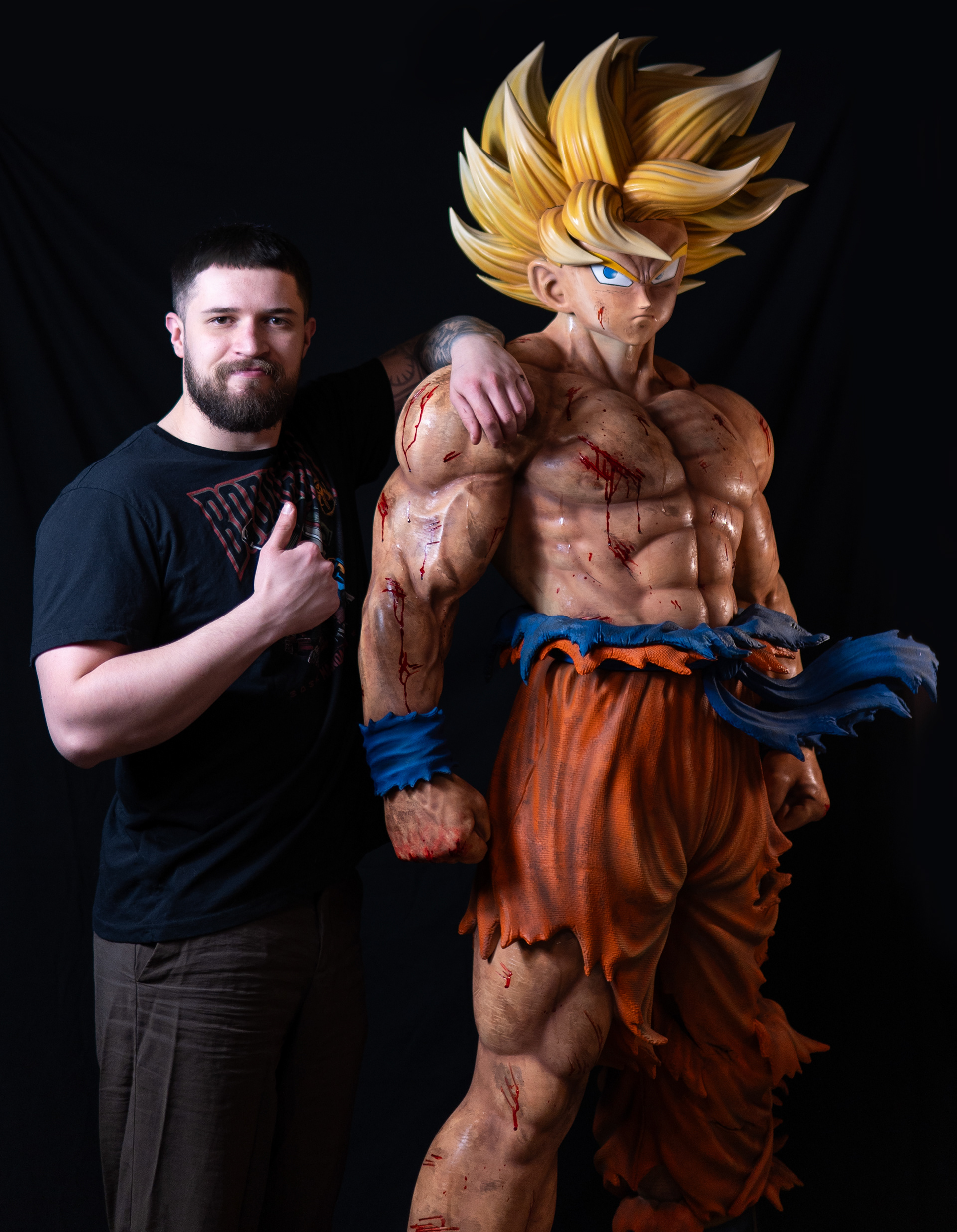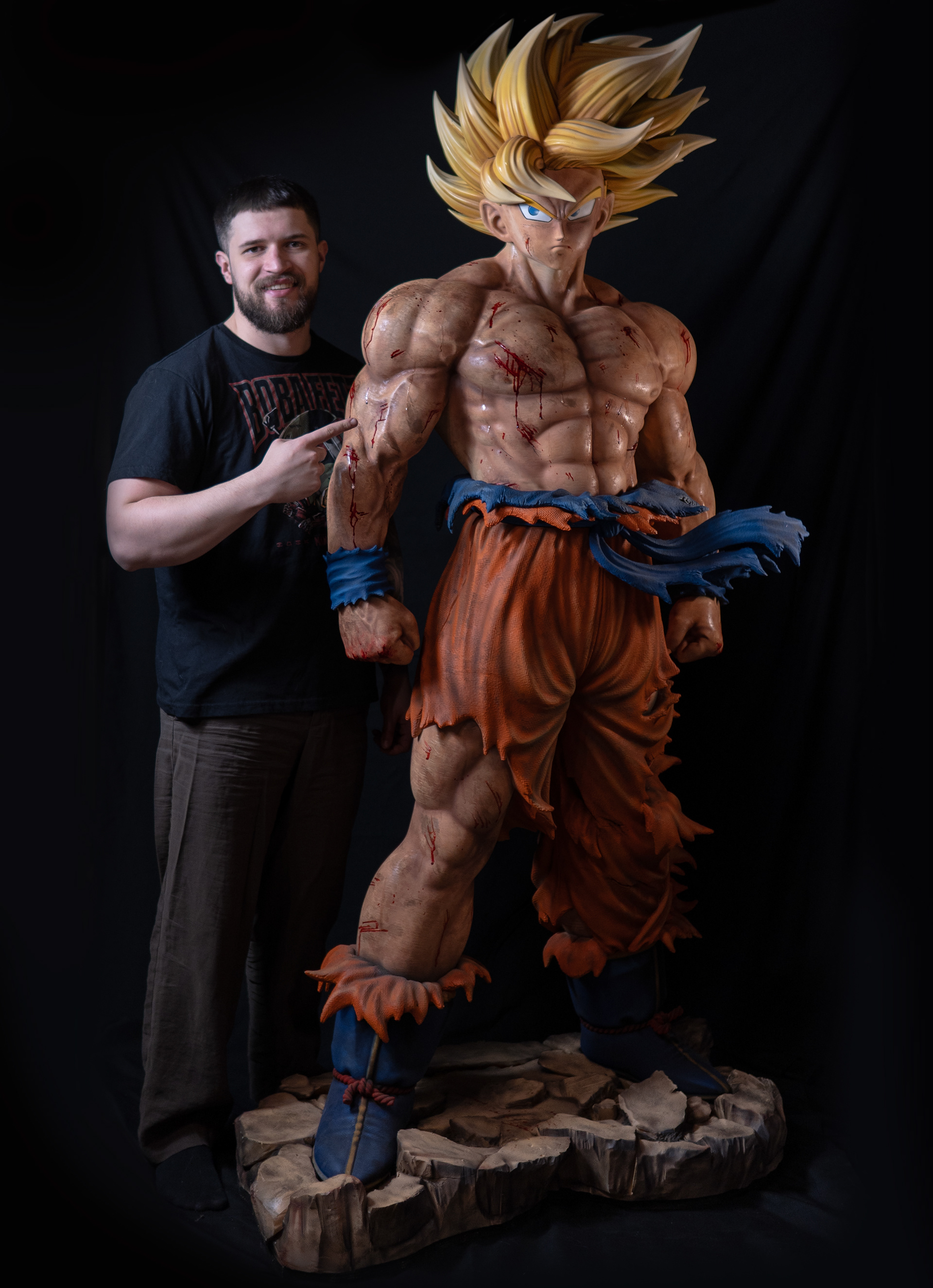 This is a life-size statue of Goku, created in a more realistic style to achieve a stronger visual impact. The statue was entirely 3D printed, except for the base, which was handcrafted. Overall, the project took approximately two months to complete.